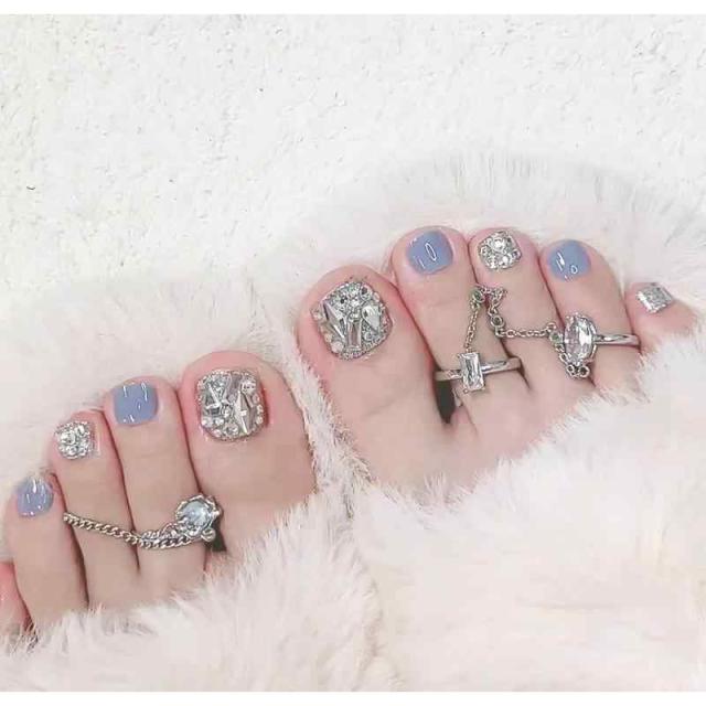 SEMTIM ネイルチップ 足 24枚入り 親指 つけ爪 フット 繰り返し使える ジェル ネイルチップ サマー ネイル 夏 結婚式 成人式 足用簡単剥がせる フット用 (YL803)