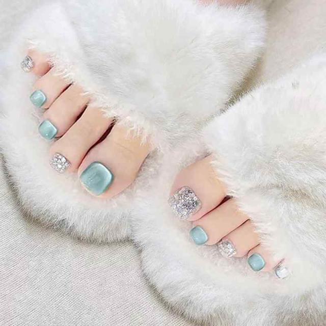 SEMTIM ネイルチップ 足 24枚入り 親指 つけ爪 フット 繰り返し使える ジェル ネイルチップ サマー ネイル 夏 結婚式 成人式 足用簡単剥がせる フット用 (JZ-192)