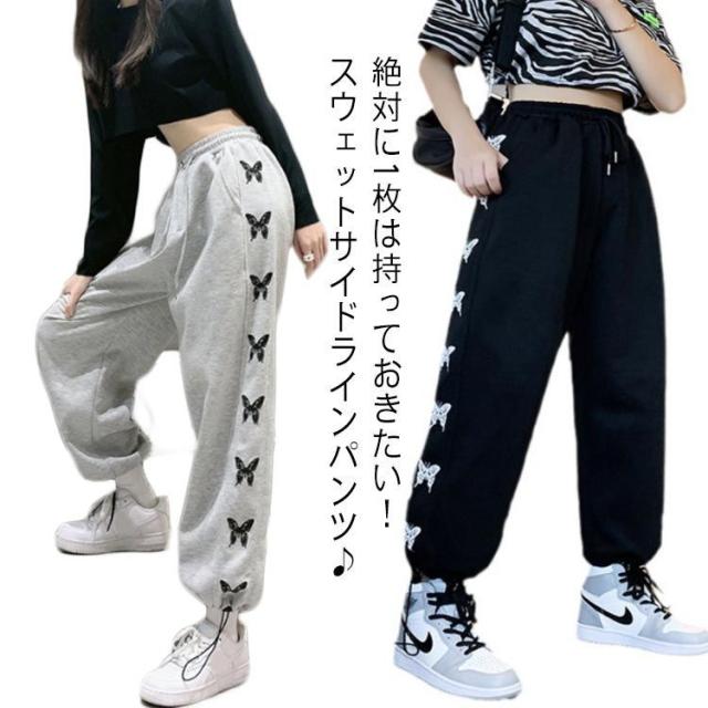 ジョガーパンツ スウェットパンツ ワイドパンツ サイドバタフライラインパンツ ボトムス 蝶 トラックパンツ イージーパンツ グレー ブラック ダンス