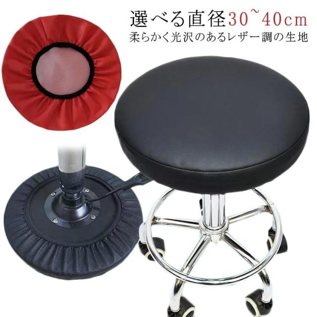 スツールカバー PUレザー 1枚 伸縮 エステスツールカバー エステスツール 座面カバー 丸椅子カバー キャスタースツールカバー 診察椅子カバー 回転椅子カバー カットチェアカバー 無地 ブラック レッド 選べる直径30~40cm