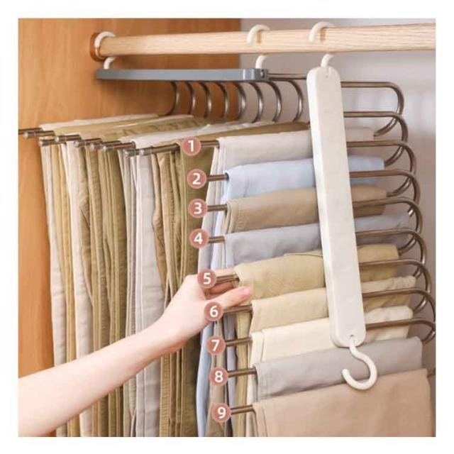 | 収納スペースをより有効活用できる、縦・横2way仕様の連結式スラックスハンガー。 衣類を掛けた状態でも折りたたむことができ、スペースを節約したいときにおすすめ。 丈夫なステンレスフックなので高耐荷重と耐久性に優れています。 滑り止め付のバーで服の落下を防止。 1つのハンガーでスラックス5着収納可能。 | |