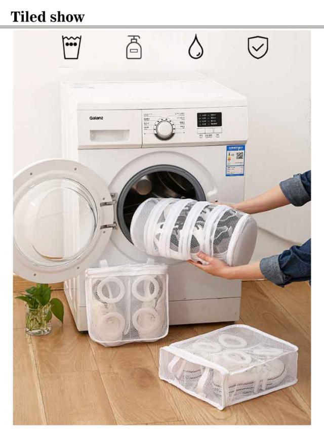 | 【靴用洗濯ネット】【丸洗い】【2タイプ】 シューズを丸洗い!ネットに入れて洗濯機で洗うだけ! 面倒な上履き洗いも、洗濯機で簡単丸洗いができます。 左右に仕切りがあるため靴同士が擦れず、傷を防ぎます。 洗濯ネットについたループを使えば、物干し竿にそのまま通したり、ピンチハンガーで吊るして乾かすことができます。 | |