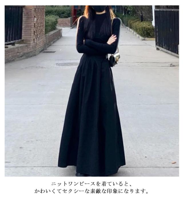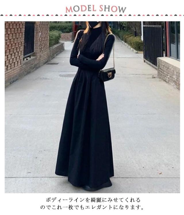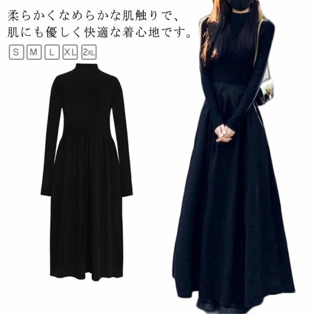 送料無料 インナーワンピース 長袖 着?せ ロング丈 秋冬 高級感 重ね着 レイヤード風 ハーフタートルネック ペチコート 暖か 冷え対策 スカート 黒 無地 冬 新作 無地 シンプル 大人 可愛い お洒落 S M L XL 2XL