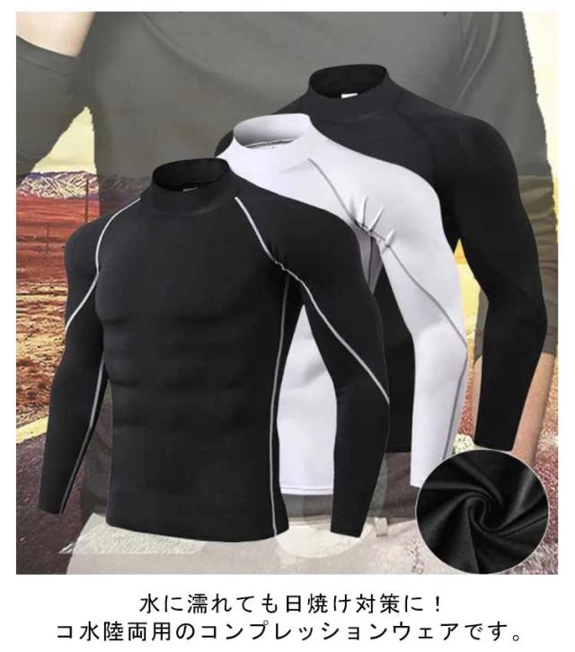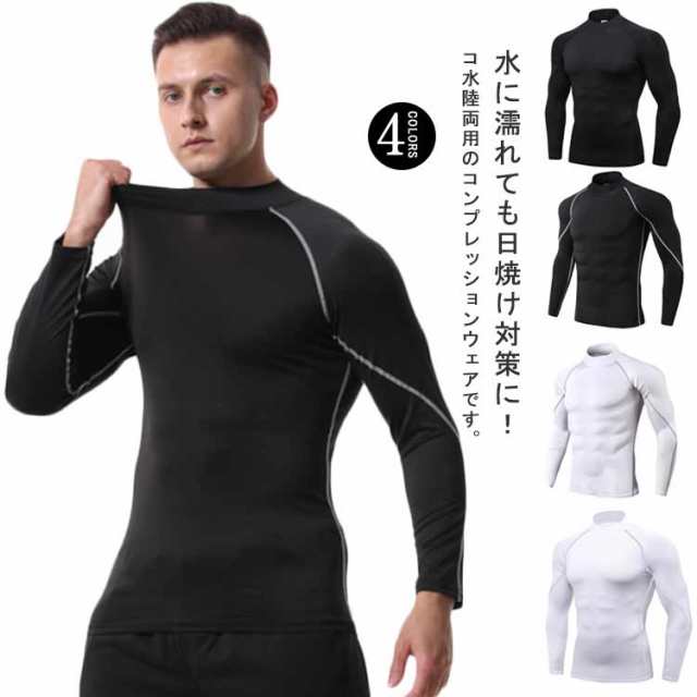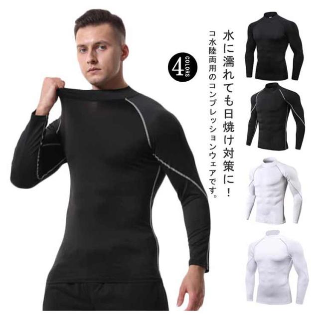 冷感インナー コンプレッションウェア ストレッチ性 水着 アンダーシャツ メンズ 水陸両用 加圧シャツ ハイネック 吸汗速乾 ラッシュガード 長袖 通気性 ランニング スポーツ トレーニング フィットネス ジム