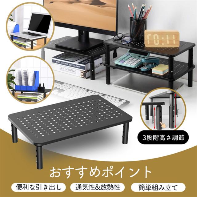 パソコンスタンド モニター台 机上台 机上ラック 3段階 デスク ディスプレイ台 高さ調整可能 金属PCスタンド 卓上収納 工具不