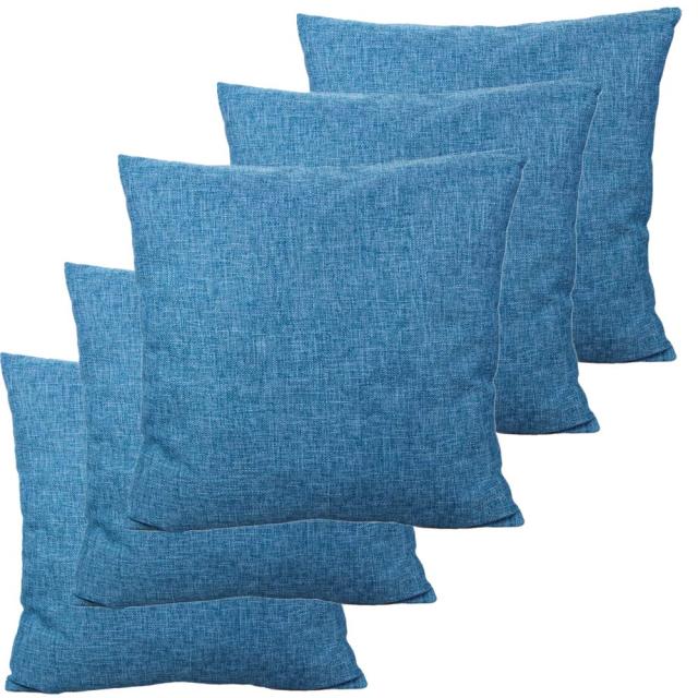 All Smiles 座布団カバー 55x59cm 5枚セット 無地 リネン風 ざぶとんかばー クッションカバー 銘仙判 おしゃれ 北欧 和室 シンプル ブル