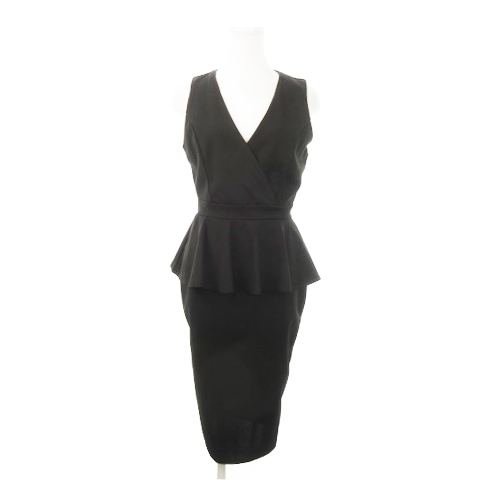 【中古】リプシー LIPSY ペプラムワンピース ひざ丈 ノースリーブ カシュクール ストレッチ 38 M 黒 ブラック