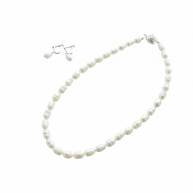 【中古】ノーブランド品 ネックレス イヤリング 2点セット アクセサリー 両耳用 ねじ式 パール 真珠 10mm