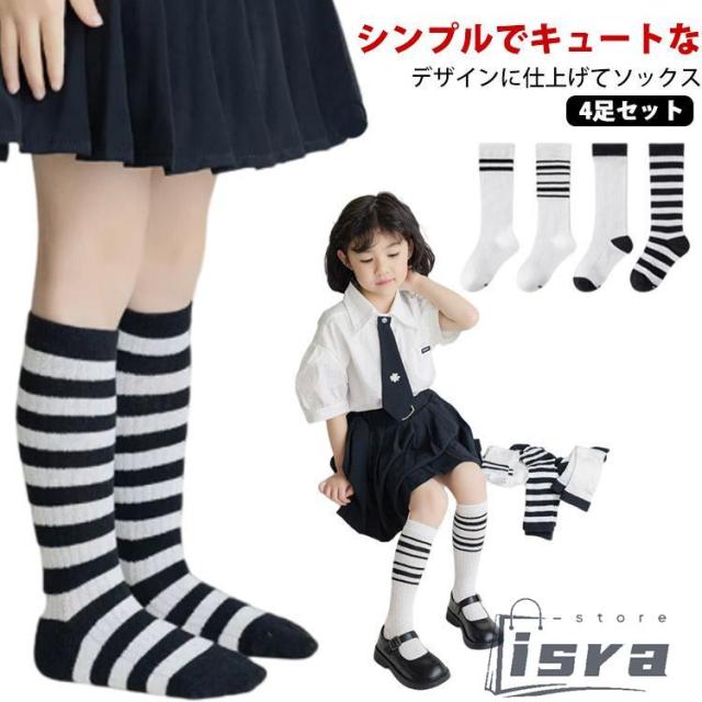 ハイソックス ニーハイソックス 薄手 4足セット メッシュ 春秋夏 靴下 キッズ ソックス 女の子 かわいい ロング 長い 膝上 おしゃれ 可愛い 子