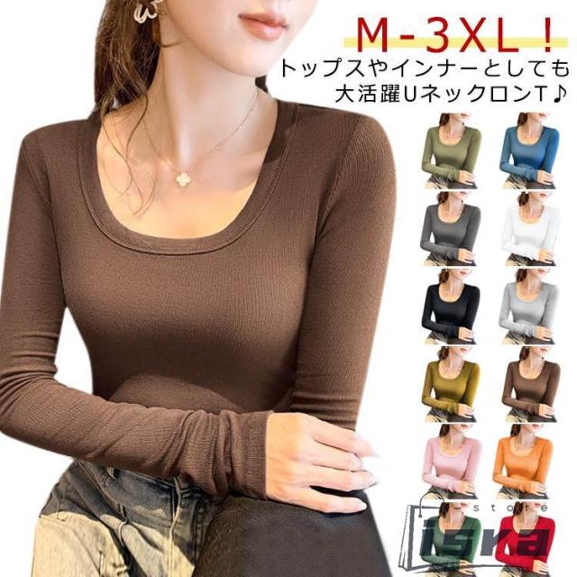 カジュアル フィット 薄手 春秋 リブ 無地 ロンT Tシャツ 通勤 長袖tシャツ Uネック レディース 長袖 通気性 タイト Uネック カットソー