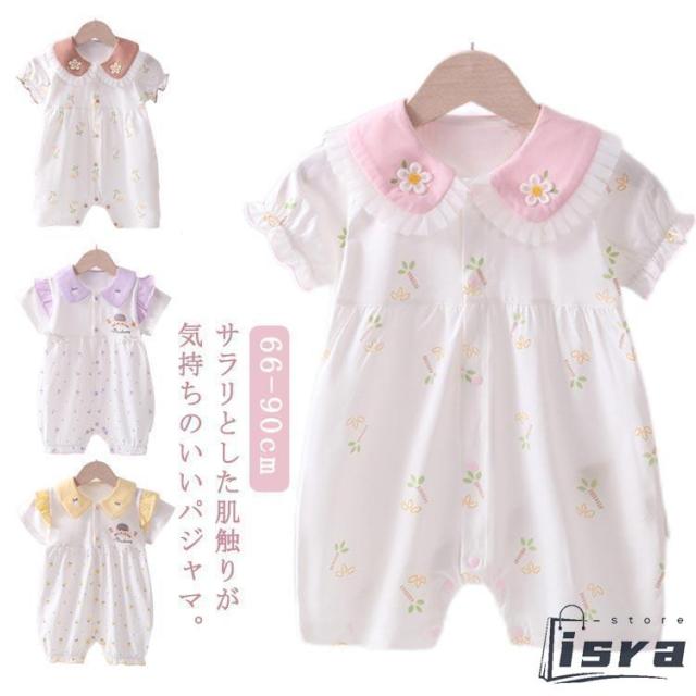 ベビー服 ロンパース 半袖 カバーオール 女の子 前開き ベビー服 綿 コットン 春 夏 秋 ベビー 新生児 子供服 キッズ 花 かわいい おしゃれ