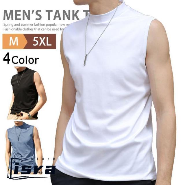 ゴルフ モックネックシャツ ゴルフウエア メンズ 春 夏 タンク ノースリーブ ハイネックTシャツ アンダーシャツ スポーツ ダンス