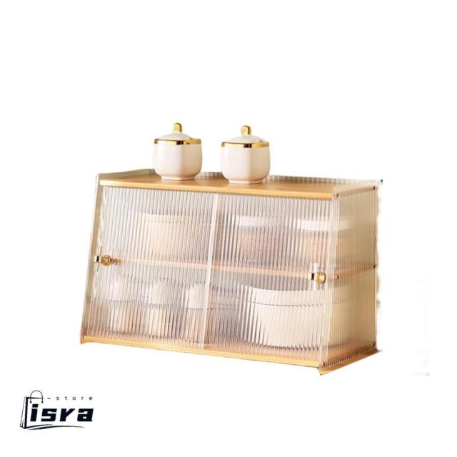 食器棚 卓上食器棚 アクリル扉 キッチン収納棚 ミニ食器棚 キッチンキャビネット アクリル扉 レンジボード 調味料入れ 北欧風 扉付 防塵 クラムシェルドア 簡単