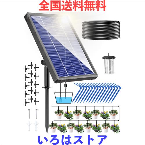 [ソーラー自動灌水器]電源も水道も要りません。ソーラーパワーで自動給水、複雑な配線等が一切いりません。太陽光で動くポンプが水タンク(別売り)からチューブを通して複数のノズルに自動配水目的と規模に応じた水やりを実現出来します。2200mAh充電電池内蔵していますので、曇りの日でも給水可能。