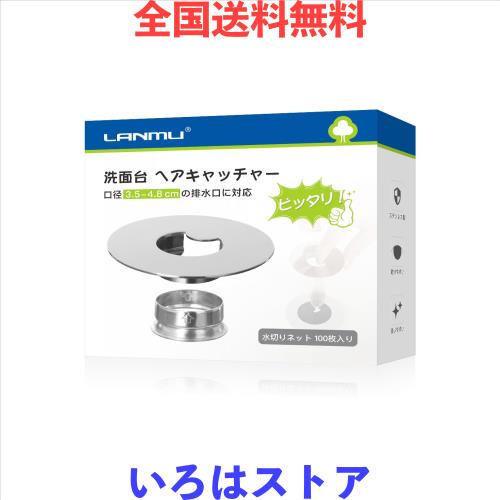 LANMU 洗面台 ヘアキャッチャー 洗面所 排水口 ゴミ受け ステンレス製 排水口径3.5-4.8cm 用 ピッタリ 排水口ネットホルダー 100枚 水切