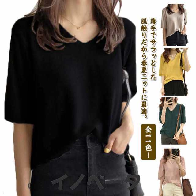 夏 全11色!七分袖 カットソー 薄手 vネック ゆったり レディース Tシャツ 全11色!七分袖 ニットセーター ゆったり 半袖 サマーニット 接触冷感 プルオーバー 大きいサイズ 長袖 カジュアル 通勤 おしゃれ
