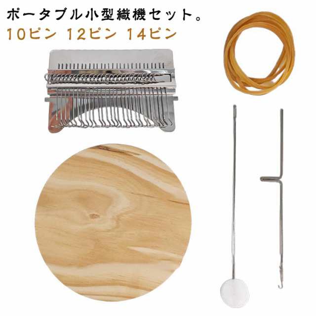 | サイズについての説明 | セット内容:丸い木製底1個、ミシン1台、かぎ針1本、縫い針1本、輪ゴム5本 10ピン:直径6.5cm/重量約50g 12ピン:直径6.5cm/重量約57g 14ピン:直径6.5cm/重量約60g ※実寸はメジャー採寸の為、若干の誤差が生じる場合があります。 |