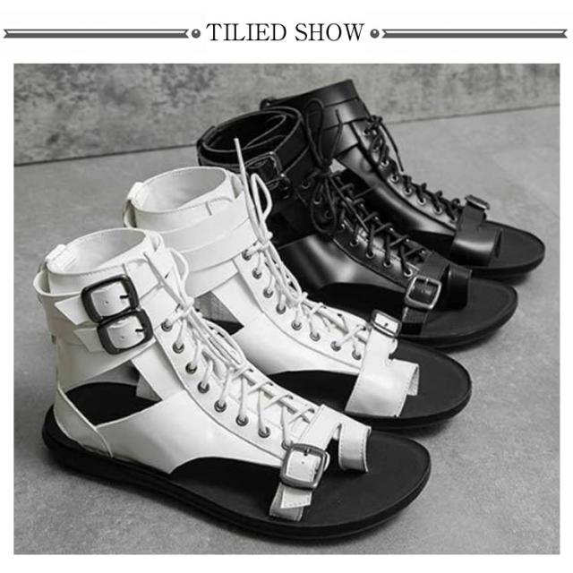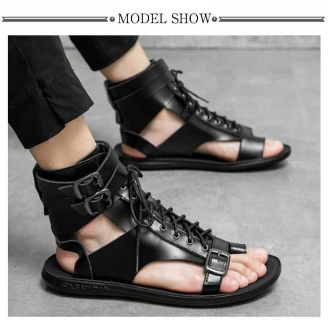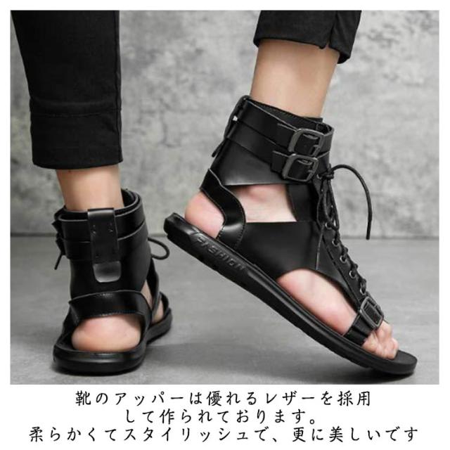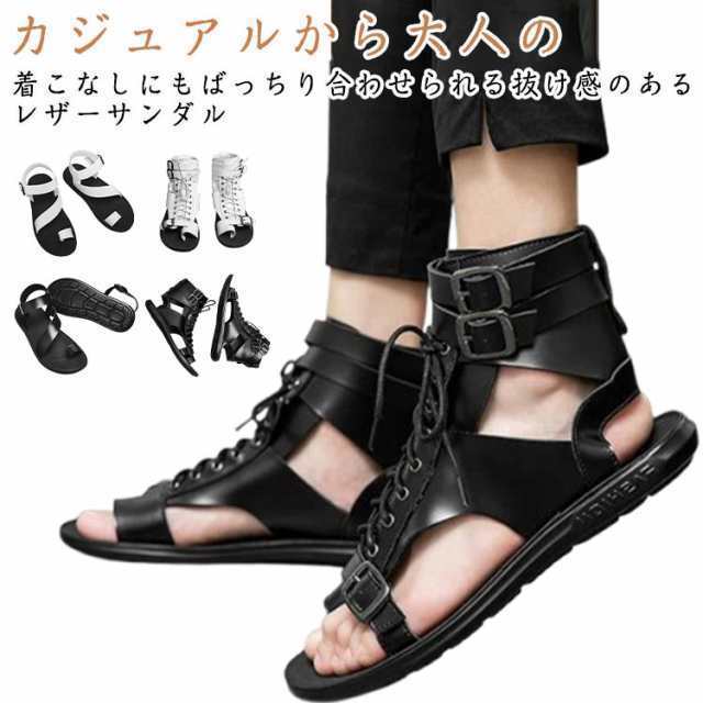 サンダル モード系 ブーツサンダル レザーサンダル 蒸れない お兄系 アウトドア サマーサンダル 軽い 通気性 グラディエーターサンダル 男性用 夏ブーツ サマー メンズ カジュアルシューズ 滑り止め 夏 個性的 ストリート系 大人 ブラック ホワイト 白 黒