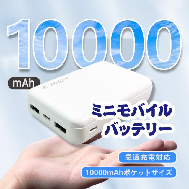 モバイルバッテリー 10000mAh 軽量 小型 2A急速充電 スマホ充電器 iPhone Android 全機種対応 旅行 出張
