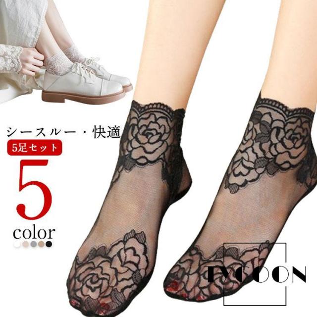 靴下 花柄レース ソックス ショートソックス 脱げにくい レディース シースルー 綿 シアー シアーソックス レース フットカバー 脱げない くつ下