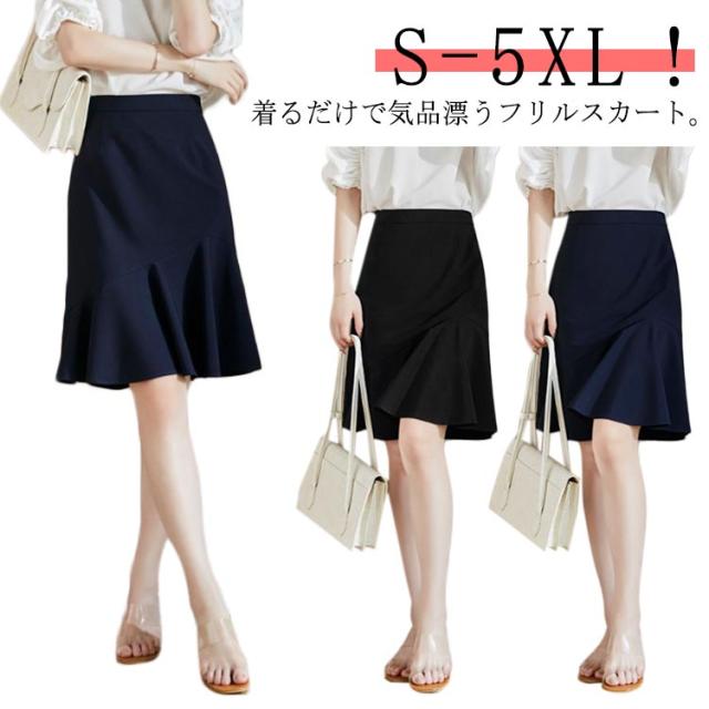 フレアスカート レディース 春夏 マーメイド スカート 膝丈 タイトスカート ストレッチ おしゃれ ハイウエスト 楽ちん aライン 黒スカート ボトムス 美脚 大人 通勤 きれいめ 韓国風 2 可愛い