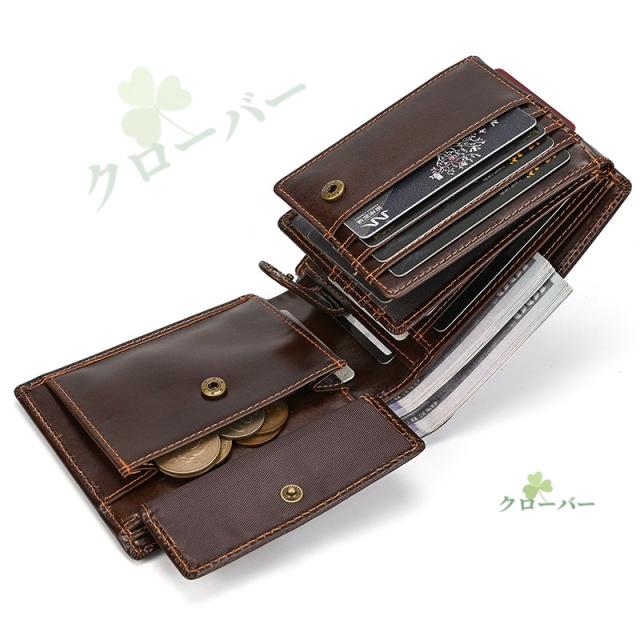 二つ折り財布 財布 メンズ 二つ折 本革 折りたたみ カード入れ 小銭入れ 軽量 革財布 レザー 革 カードがたくさん入る ブラック ビジネス シンプル 折り財布 薄型 軽いカード 誕生日 ギフト 黒 プレゼント 実用的 男性