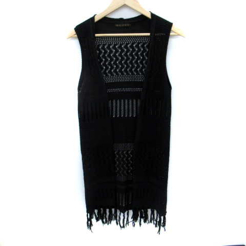 【中古】ゴージ GORGE ニットベスト ロング丈 前開き フリンジ 透かし編み 黒 ブラック /SM23 レディース