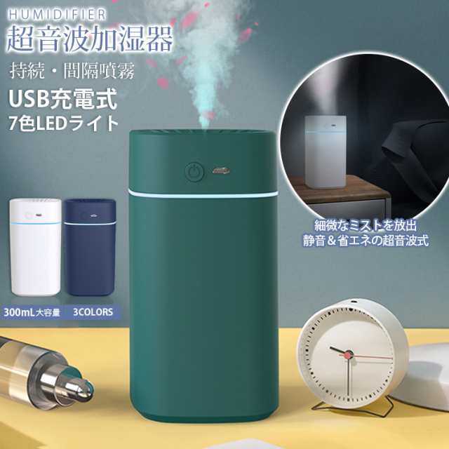 加湿器 超音波式 USB充電式 300ml 超音波加湿器 乾燥対策 車載加湿器 持続 間隔噴霧 オフタイマー ミニ加湿器 省エネ 静音 超微細ミスト 卓上 オフィス 小型 コンパクト おしゃれ