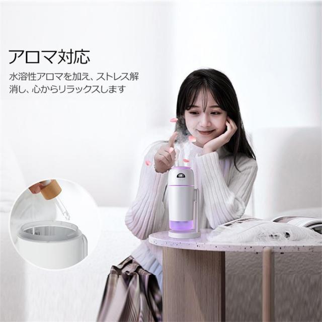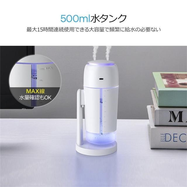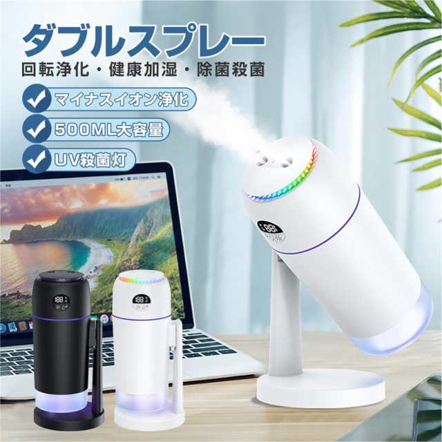 送料無料 ダブルノズル加湿器 イオン空気清浄 加湿器 充電式 卓上 小型 UV除菌 オフィス 500ml 空気清浄機 角度調整 次亜塩素酸水対応 アロマ 大容量 スチーム ミニ加湿器 おしゃれ LEDライト マイナスイオン 180°上下調整 車載用 超音波 usb充電 静音