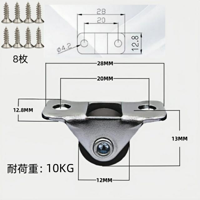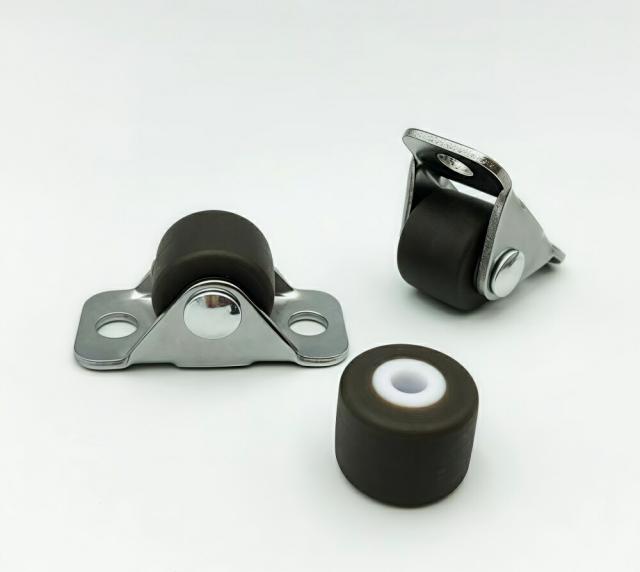 ミニ固定キャスターホイール0.5" 4個セット 金属 トッププレートネジ付き 家具や小さなカート用 柔らかいプラスチック製 固定ローラー ブラウン