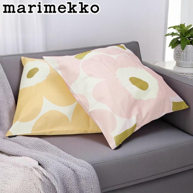 【WINTER SALE&ポイント5倍】マリメッコ/MARIMEKKO ウニッコクッションカバー2個セット北欧デザイン・コットン×サテン生地・50*50cm (ホワイト×ライトピンク×アプリコットオレンジ×ゴールド) 73997 123/WHITE*PINK*GOLD*APRICOT[返品無料]