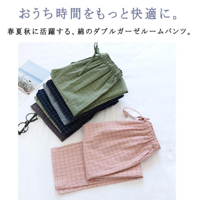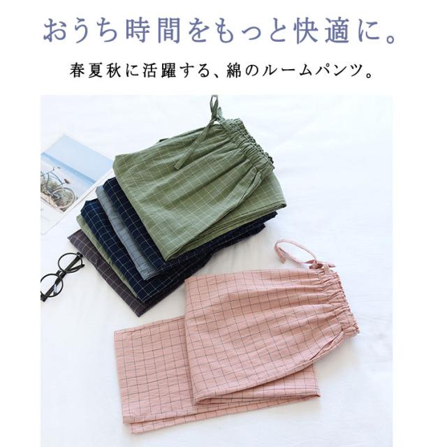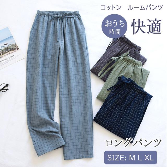 ルームウエア パンツ レディース メンズ 単品 綿 パジャマズボン ルームパンツ チェック柄 無地 ロング丈 ポケット付き 春 夏 秋 薄手 通気性 軽量 快適 部屋着 ナイトウェア お揃い M L XL