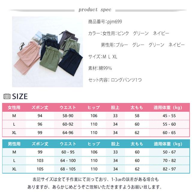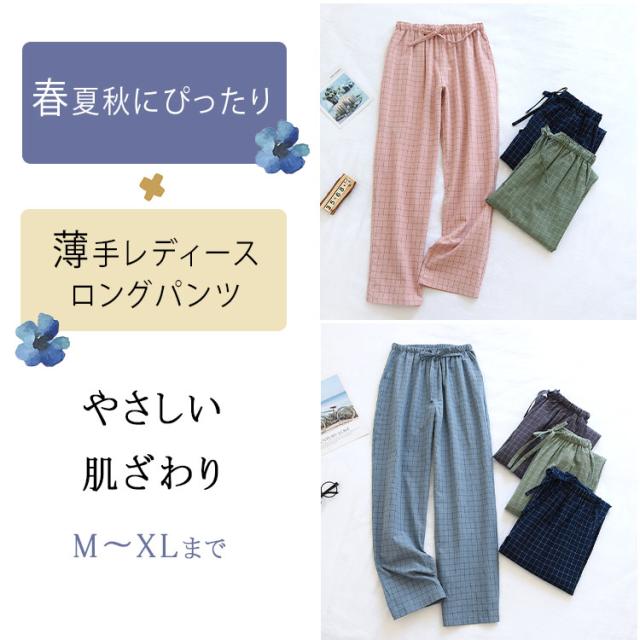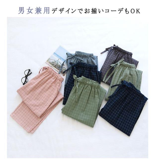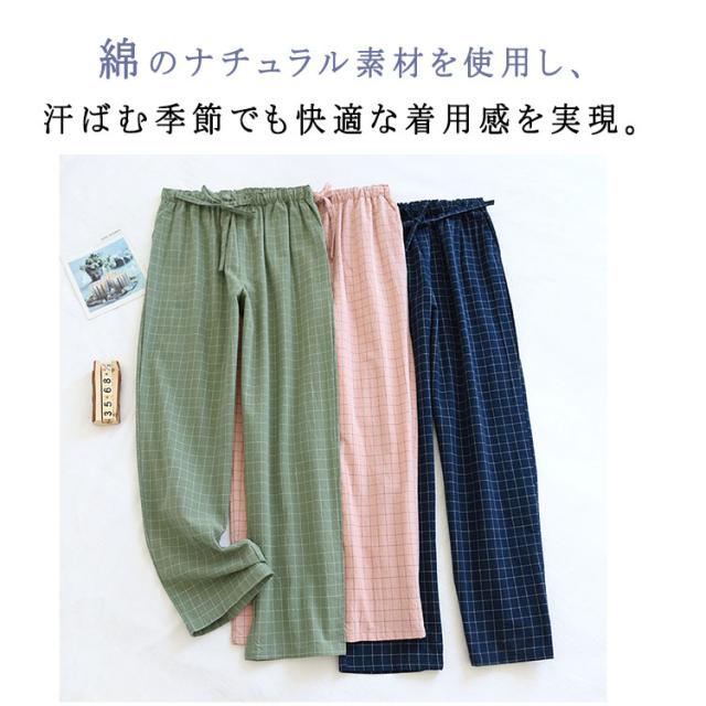 商品名 | ルームウエア パンツ レディース メンズ 単品 綿 パジャマズボン ルームパンツ チェック柄 無地 ロング丈 ポケット付き 春 夏 秋 薄手 通気性 軽量 快適 部屋着 ナイトウェア お揃い M L XL |