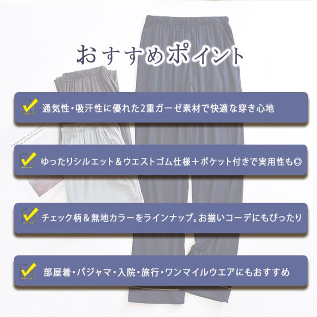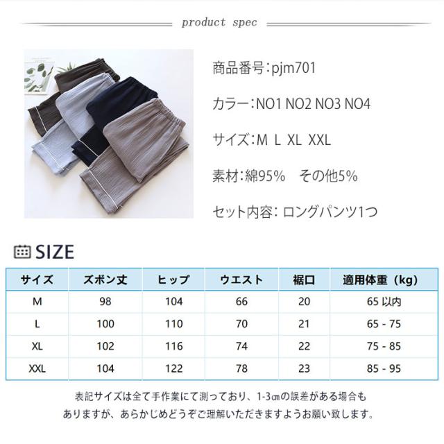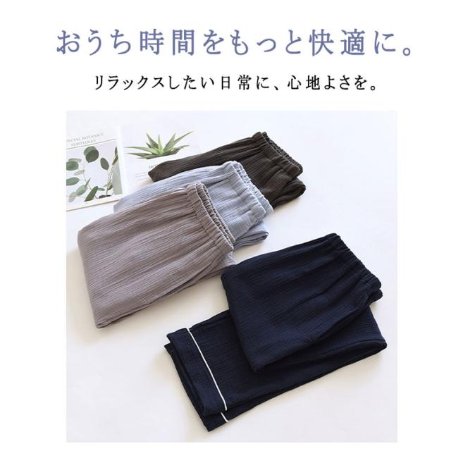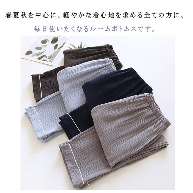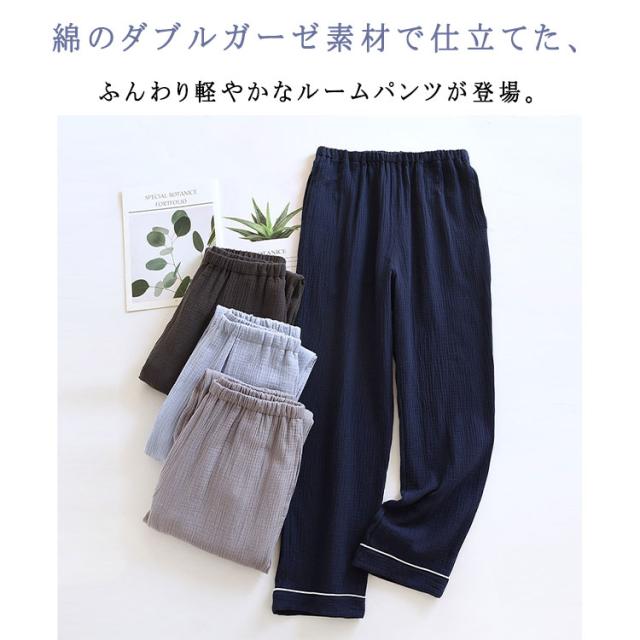 商品名 | ルームウエア パンツ メンズ 単品 綿 ダブルガーゼ パジャマズボン ルームパンツ 無地 ロング丈 ポケット付き 春 夏 秋 薄手 通気性 軽量 快適 部屋着 ナイトウェア M L XL XXL |