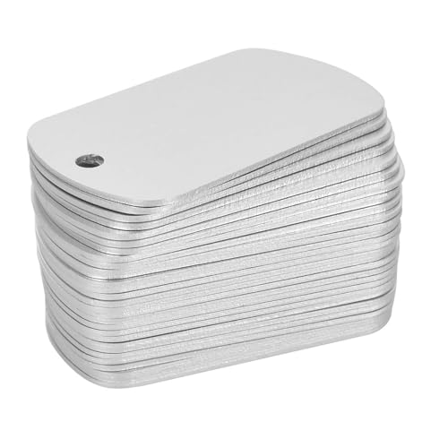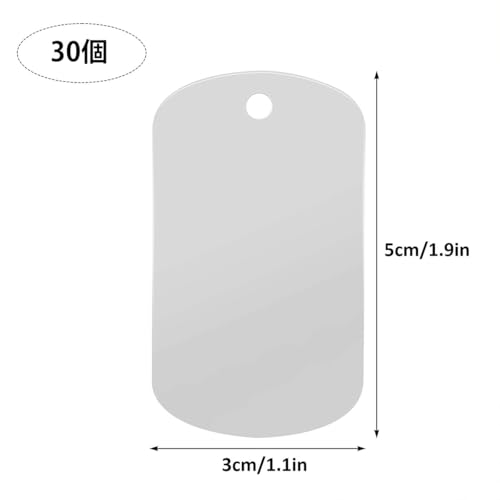 【完璧なサイズ】金属タグのサイズは50 x 30 x 1 mmで、穴が開いているので、タグを簡単に掛けることができます。パッケージには30枚の空白タグが含まれており、日常のニーズや予備として十分です。ドッグタグは表面が滑らかで、軽量で耐久性があり、持ち運びが簡単です。