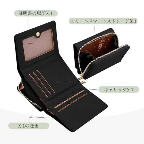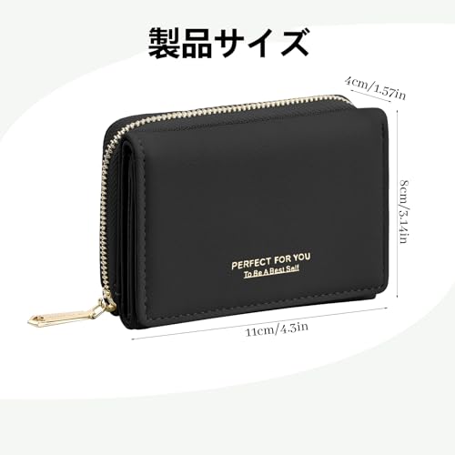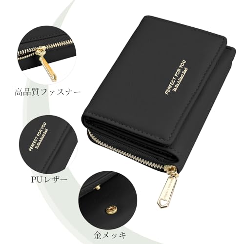 ミニ財布 レディース 2つ折り レディース カードケース 小さめ レザーウォレット たくさんのコンパートメントを備えた小さな財布の女性用財布 コンパクト財布 カードケース 女性用 女の子用 (ブラック)