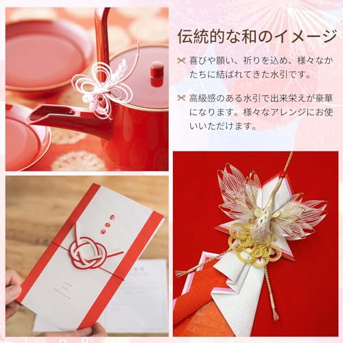 【高品質素材】当社の水引きは和紙とPP素材で作られています。表面が滑らかで、耐久性があり、ある程度の耐水性があります。長さは約90cmです。キラキラ、光沢のある色で手作り作品に魅力を加えます。