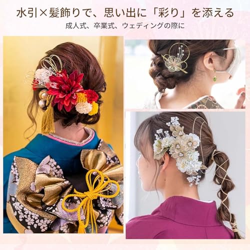 【広く使用されています】普段のお出かけから、成人式や結婚式などのフォーマルなシーン、運動会や文化祭などのイベント、浴衣や着物などの和装のアレンジまで、幅広くお使いいただけます。髪だけでなく、ネイル、DIYジュエリー、手作りアート、絵画、家具の装飾、クレイジェルなど、さまざまな場面で使用できます。