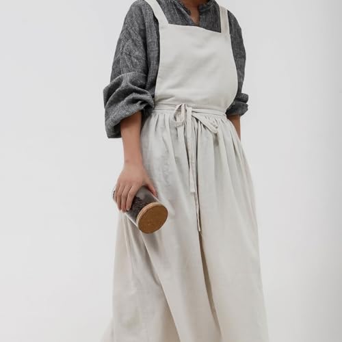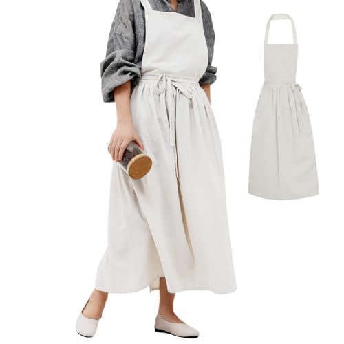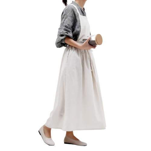 【高品質素材】高品質のコットンを使用したロングエプロンは、シルクのような質感とリネンのような色合いで涼しげな雰囲気を醸し出します。軽量な生地にもかかわらず、非常に耐久性があり長持ちするため、頻繁に使用しても長持ちします。