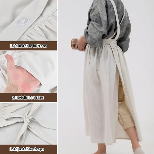 【便利な調整機能】当社のコットンエプロンは、ストラップを後ろで交差させてボタンで留めるか、首に巻くかの 2 つの着用オプションがあります。ショルダーストラップの 3 つのボタンホールにより、最適な快適さのために長さを調節できます。