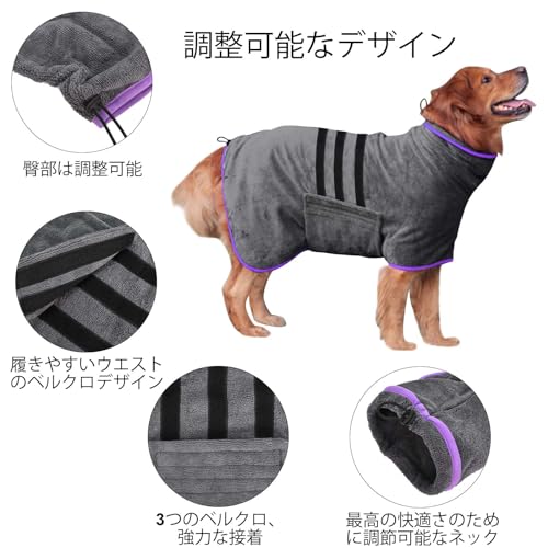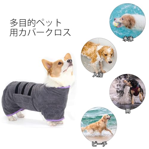 犬用バスローブ 犬 タオル 超吸水 速乾 犬用バスタオル 犬 タオル 服 ダークグレー Mサイズ ペットバスローブ 体拭き 猫用 犬用 中型小型ペット用 マイクロファイバータオル