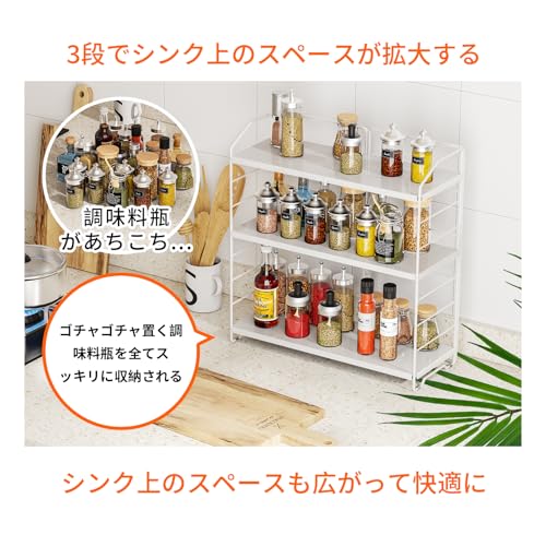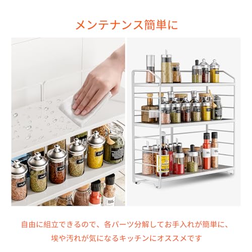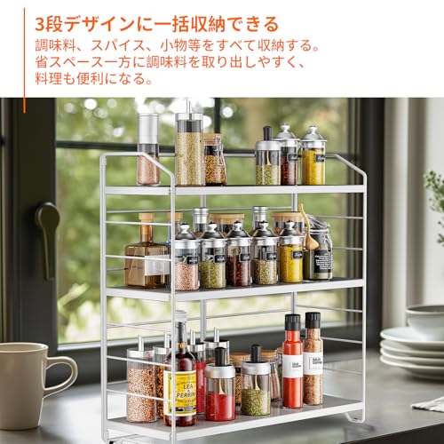 調味料ラック 3段式 調味料収納 スパイスラック 置き型 三段調整可能 キッチン収納ラック 調味料棚 調味料入れ 調味料ケース バスルーム 台所収納 小物収納 多機能型 組み立てが簡単 ホワイト