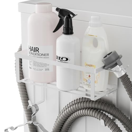 【洗濯機横にすっきり収納】洗濯機の側面に簡単に取り付けできるマグネット式収納ラックで、限られたスペースを有効活用。洗剤や柔軟剤、スプレーボトルなどをスッキリと整理できます。