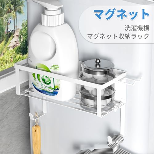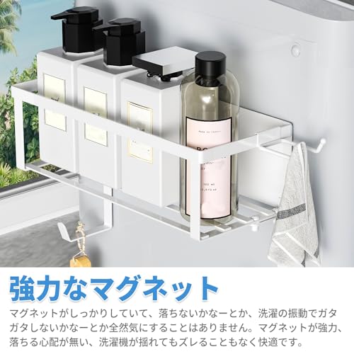 洗濯機ラック マグネット サイドラック タオル置き バスタオル掛け 洗面所収納 洗濯機マグネット収納 横収納 省スペース 簡単に取り付け 活用 ホワイト ホワイト