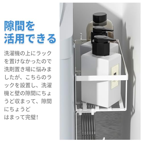 【隙間を最大限に活用】 洗濯機と壁の隙間や、狭いスペースを活かした収納が可能。デッドスペースを無駄にせず、洗濯周りをすっきり整頓します。