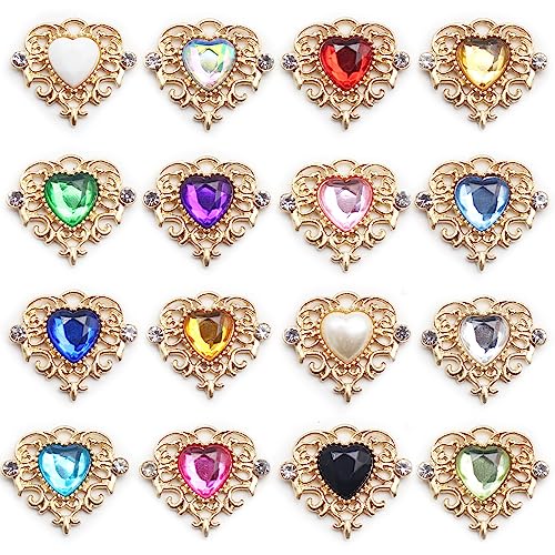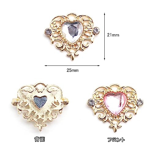 ビジューパーツ 台座つき ビジュー ハート パーツ センターパーツ セット ストーン チャーム パーツ ジュエル デコ素材 ブローチ アクセサリーパーツ DIY製作キット ゴスロリ ロリータ アクセント 貼り付け 16個セット