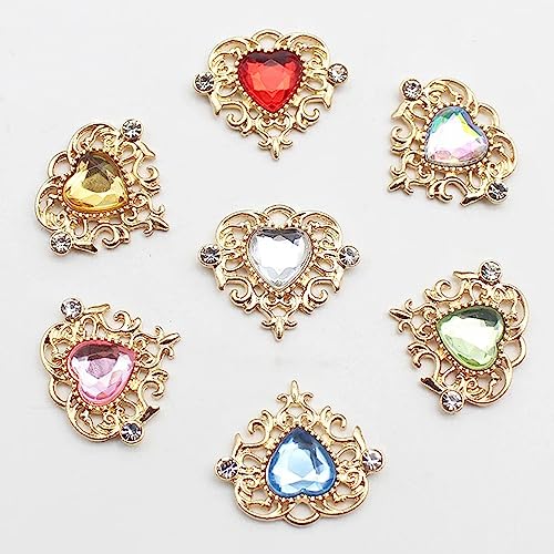 【ジェムストーンデザイン】このハート型ダイヤモンド装飾アクセサリーには、16色の樹脂クリスタルと浅金色合金の台座があり、サイズは21×25mmです。多面カット技術でカットされたダイヤモンドは、宝石のような質感で、光を反射して輝きます。この美しいデザインは、DIYプロジェクトにエレガントな質感を追加できます。