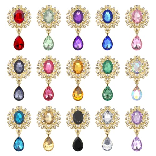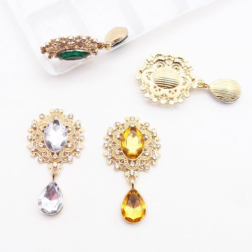 ビジューパーツ 台座つき しずく 宝石 デコ素材 イヤリング パーツ アクセサリーパーツ DIY製作キット 手作り素材 ジュエル 台座つき ロリータ ハンドメイド 豪華 ビジューキラキラ 目立つ 15色 (金 15個セット)