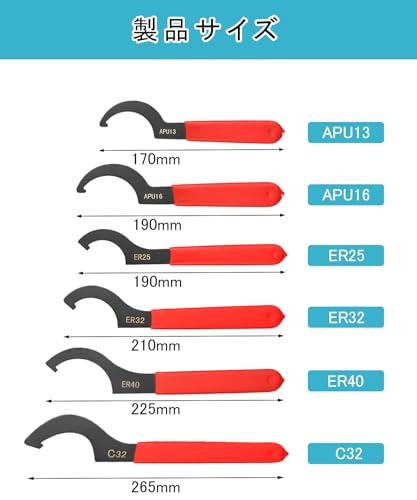 【素材とサイズ】この引き締めレンチは45#鋼を使用しており、耐久性と耐摩耗性に優れています。車体の高さを簡単に調整することができます。C32/APU13/APU16/ER25/ER32/ER40の6つの異なるサイズがあります。