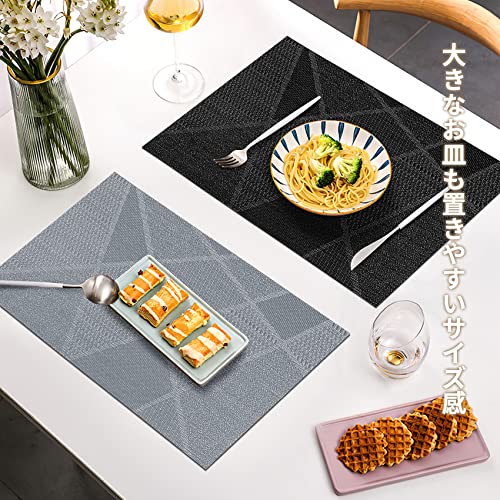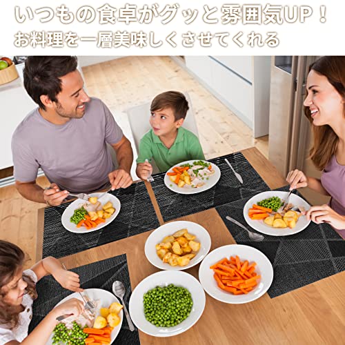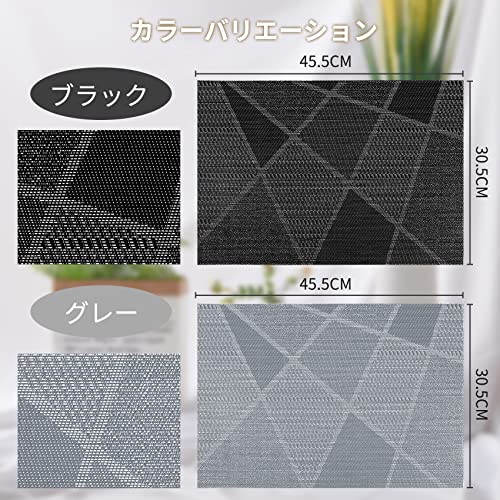 ランチョンマット 洗える プレースマット PVC製 45x30cm ランチョンマット 北欧 滑り止め 撥水 防汚 幾何学模様 ランチマット 食卓 パーティー用 業務用 お手入れ簡単 ブラック 2枚セット